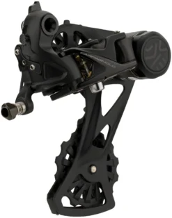 Le dérailleur arrière Campagnolo Ekar 13 vitesses est spécialement conçu pour les transmissions à une vitesse en gravel et dispose d’un mécanisme d’amortissement pour éviter les sauts de chaîne.