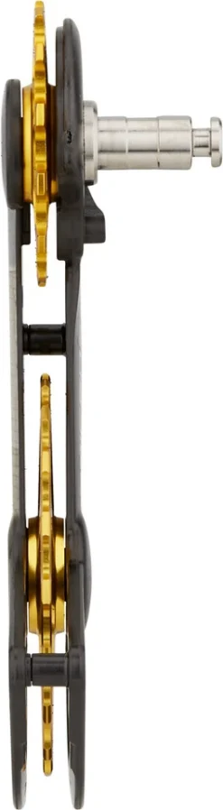 Avec le système de galets de dérailleur CeramicSpeed OSPW pour Shimano Dura-Ace RD-R9100 et Ultegra RD-R8000-SS, tu peux améliorer ta transmission pour des performances et une durabilité accrues. Il se compose d’un galet supérieur de 13 dents et d’un galet inférieur de 19 dents (noir, doré ou rouge), qui sont basés sur des roulements super lisses en céramique. Il est également doté d’une chape en carbone permettant de réduire son poids. Par rapport au modèle précédent, un boulon d’arrêt a été ajouté pour simplifier l’installation. Outre les dérailleurs arrière mécaniques à 11 vitesses mentionnés ci-dessus, ce système est également compatible avec les dérailleurs arrière électroniques Dura-Ace RD-R9150 et Ultegra RD-R8050-SS. Comme tous les systèmes Oversized Pulley Wheel (OSPW) de CeramicSpeed, la version Shimano frotte moins que les galets standard et permet ainsi d’avoir à utiliser bien moins de force. La version Coated présente également d’autres avantages : un revêtement métallique des bagues augmente les performances déjà élevées, la durabilité augmente et les roulements ne s’usent presque pas.