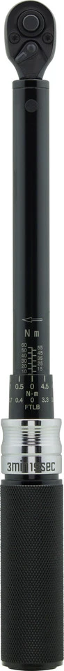 Spécifications :Fonction :outil de vissage avec couple de serrage définiLogement d’outil:1/4″ (2 – 26 Nm), 3/8″ (10 – 60 Nm), 1/2″ (40 – 200 Nm)Plage de réglage:2 – 26 Nm, 10 – 60 Nm, 40 – 200 NmInformations techniques :Matériau :acierLongueur :21 cm (2 – 26 Nm), 31 cm (10 – 60 Nm), 49 cm (40 – 200 Nm)Tolérance:± 4 % de la valeur réglée (pour 2 – 26 Nm, mesurée entre 5 et 26 Nm), ± 3 % (pour 10 – 60 et 40 – 200 Nm)Sens de déclenchement du couple:droiteSens de l’entraînement:commutation droite/gaucheCaractéristiques :clef dynamométrique précise fabriquée en acier de haute qualitéréglage fin par pas de 0,2 Nm ou 0,5 Nm ou 1 Nm (selon la version)longue poignée avec une surface texturée pour une manipulation confortable et une utilisation idéale de la forceconvient également pour les pièces plus sensibles, par exemple en carboneboîtier pratique pour le transport et le stockage