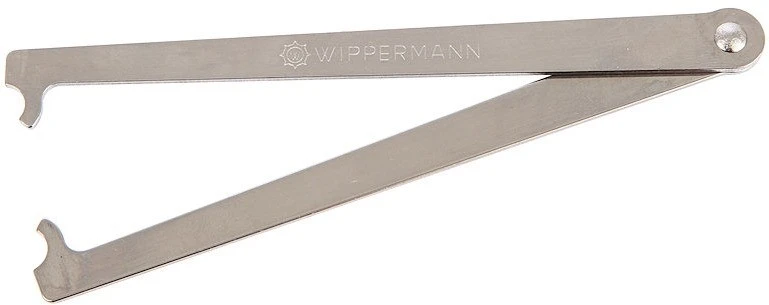 La jauge d’usure de la chaîne Connex est dépliée et placée contre la chaîne avec le point central légèrement incliné. Si le centre peut être complètement enfoncé, la chaîne doit être remplacée.