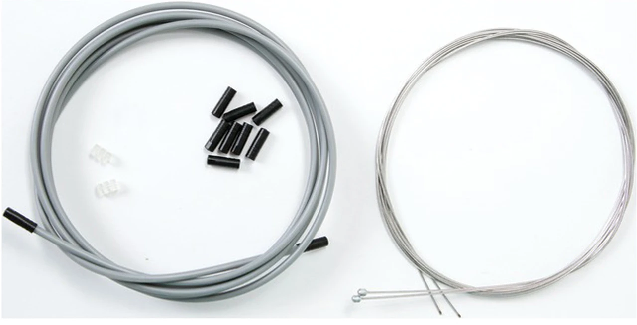 Ensemble complet de câbles de vitesses avec deux câbles intérieurs, une gaine, des manchons d’arrêt et d’extrémité et des joints toriques.