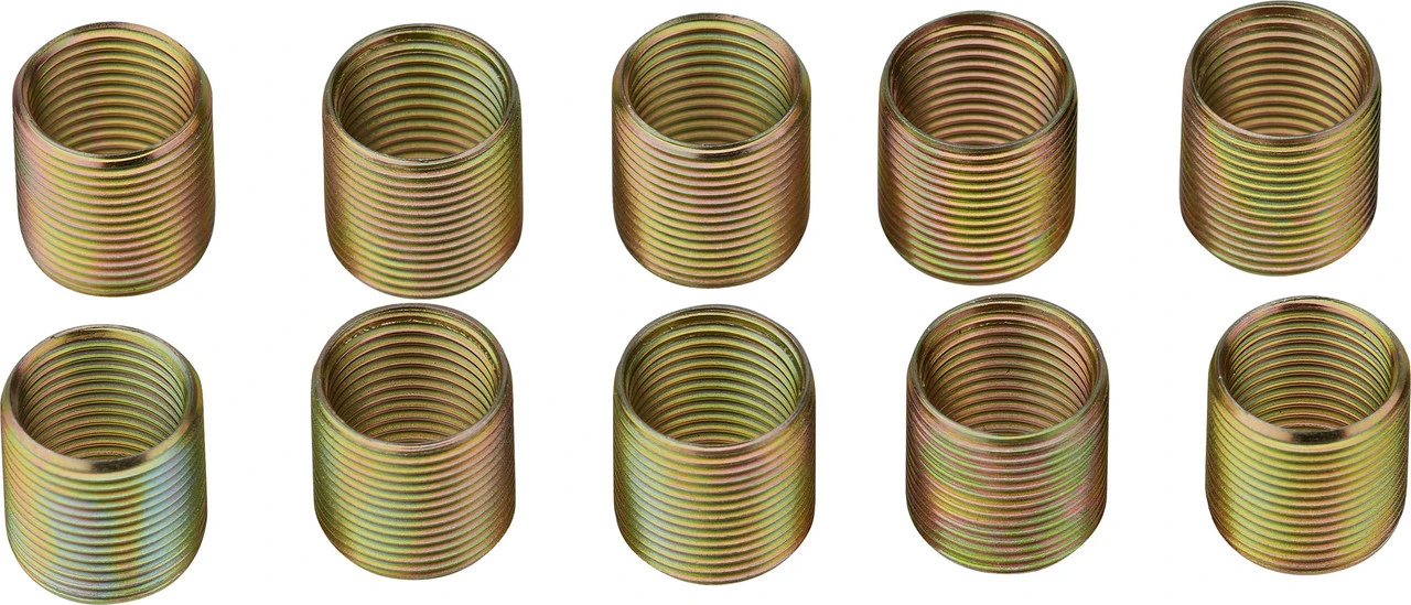 Spécifications :Dimensions extérieures:5/8″ x 24 TPIDimensions intérieures:9/16″ x 20 TPIInformations techniques :Matériau :acierCaractéristiques :les bagues taraudées remplacent les filetages endommagés des pédales dans les pédaliers (rotation à droite ou à gauche)à utiliser après avoir taraudé un nouveau filetageen acier au carbone Premium Flex Pluslongueur de 16,3 mmNuméros du fabricant :gauche:616552droite:616551Contenu :10 x douille filetée pour pédale Unior Bike Tools 1695.3A ou 1695,4ACommande également :taraud à pédale pour le filetage
