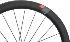 La roue pleine est conçue pour des pneus de 28 mm de large et pèse à peine 1100 g. Tu profites également d’un « effet voile » prononcé. Du côté de la cassette, la roue est plate, laissant suffisamment d’espace pour ton dérailleur arrière. Le côté du frein a une forme légèrement convexe, ce qui répartit les forces de freinage et d’entraînement de manière optimale. Le moyeu 180 pour disques de frein Center Lock, profilé et doté d’une roue libre à disque denté Ratchet EXP garantit également une propulsion maximale. Pour permettre à la force de tes jambes de se développer le plus efficacement possible, la roue libre dispose de 36 dents qui garantissent une transmission directe de la puissance et permettent ainsi de réduire au minimum toute course à vide indésirable. Le trou de la valve est dissimulé derrière un capuchon en carbone. Tu peux l’ouvrir facilement sans outils en le faisant tourner de 90 degrés. Pour ne pas entraver l’aérodynamisme, le couvercle des trous de valve est pleinement intégré dans la paroi de la roue pleine.