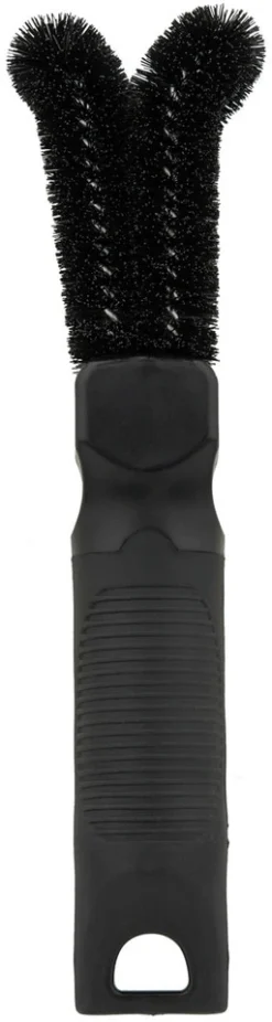 Avec la brosse Two Prong de Dynamic, tu peux éliminer la saleté des fourreaux de fourche, des haubans et des bases arrière.