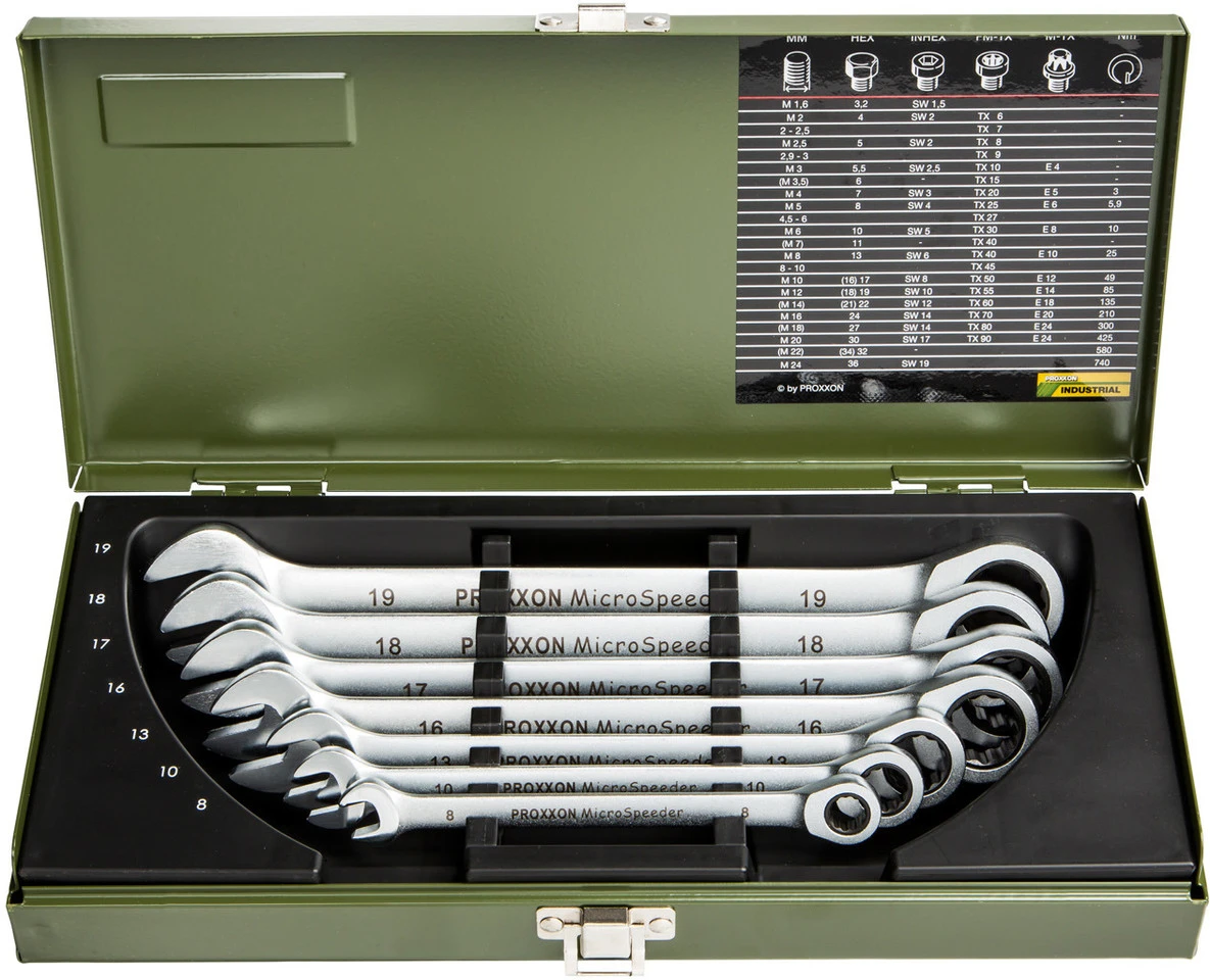 Contenu :7 x clefs plates à anneaux Proxxon Microspeeder1 x boîtier en acier Proxxon