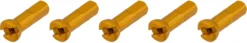 Les écrous en aluminium Polyax de Sapim – vendus ici en paquet de 5 – ont une tête ronde qui fonctionne comme une rotule. Cela permet d’obtenir une meilleure ligne de rayons-écrous. L’aluminium est le matériau de choix pour des performances supérieures. Il combine faible poids, solidité et résistance à la corrosion. Sapim a choisi la plus haute qualité d’aluminium pour ces écrous : 7075-T6. Le traitement de surface anodisé permet différentes couleurs. En outre, les écrous Polyax sont dotés d’un revêtement spécial sur le filetage et la surface, qui réduit considérablement la friction entre le rayon et l’écrou et entre la jante et l’écrou. Une conception de roue simplifiée et propre et un centrage silencieux et plus efficace sont d’autres avantages de ce revêtement.