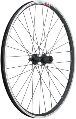 Spécifications :Utilisation :Touring & TrekkingTaille de roue:26″Type de pneu:pneu rigide ou pneu soupleNombre de rayons:32Système de frein:frein sur janteSystème tubeless:sansInformations techniques – jante :Type :DT Swiss 535Rebord de jante:avec crochetDimension (ETRTO):19-559Largeur de jante, intérieur:19 mmLargeur de jante, extérieur:24 mmHauteur de jante:20 mmDiamètre effectif de la jante:540 mm (fente pour les écrous)Diamètre d’orifice de valve:AV/DV (8,5 mm), réducteur SV inclusMatériau de la jante:aluminiumInformations techniques – moyeu avant :Type :Shimano Deore HB-T610Largeur :réglage rapide de 9 x 100 mmRoulement :roulement coniqueMatériau du corps de moyeu:aluminiumInformations techniques – moyeu arrière :Type :Shimano Deore FH-T610Largeur :réglage rapide de 10 x 135 mmRoulement :roulement coniqueMatériau du corps de moyeu:aluminiumMatériau de la roue libre:acierInformations techniques – rayons :Entrelacement roue avant:triplement croiséEntrelacement roue arrière:triplement croiséType de rayon:DT Swiss Competition / renforcé (2.0-1.8-2.0)Taille de rayon:264 mm (roue avant), 264 mm/262 mm (roue arrière gauche/droite)Matériau des rayons:acier inoxydableType d’écrou:DT SwissTaille des écrous:12 mm (longueur)Matériau des écrous:laitonAutorisations :Poids maximum (jante):140 kg poids du système (cycliste avec vélo et équipement)Caractéristiques :jante Pin Jointoillets simplestension maximale des rayons : 1200 Ncorps de moyeu anodiséaxes en acierjoints de moyeu à labyrinthe et à contacttechnologie Double-ButtedIndex des couleurs :noir :