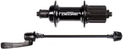 Shimano Deore FH-T610 est un moyeu arrière pour les vélos de tourisme avec frein en V et système de serrage rapide de 135 mm. Il se compose d’un corps en aluminium, d’un axe en acier et d’une roue libre en acier. Le roulement à cône scellé, nécessitant peu d’entretien, a été finement usiné et garantit une efficacité élevée. FH-T610 est disponible en noir et argent, une attache rapide est incluse.