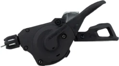 Le set de leviers de vitesses Shimano SLX SL-M7000-11-I comprend un levier pour la droite compatible avec 11 vitesses et un levier à 2/3 vitesses pour la gauche. Un convertisseur de mode n’est pas nécessaire. Les deux leviers sont équipés de supports I-Spec II, qui permettent de les combiner de façon claire et peu encombrante avec deux leviers de frein. De plus, le SL-M7000-11-I peut être positionné de manière flexible sur le guidon. Ils convainquent, comme d’habitude pour Shimano, par des changements de vitesse stables, un design ergonomique et des forces de commande minimales. Derrière cela se cache la technologie éprouvée Rapidfire Plus, avec laquelle il est possible de passer jusqu’à trois vitesses en une seule fois, ainsi que la fonction 2-Way Release. Cela permet d’actionner les leviers de déclenchement en tirant avec l’index ou en poussant avec le pouce, ce qui libère les câbles Optislick à faible frottement dans deux directions.