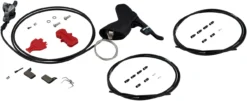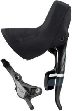 Levier de frein / de vitesses : gaucheLongueur de la conduite de frein : 950 mmNombre de vitesses : 2Frein : roue avantNuméro du fabricant : 00.7018.148.002Remarque : si tu veux utiliser le frein en combinaison avec 1×11 au lieu de 2×11, tu dois utiliser le Force 1 sur le côté gauche de la roue avant.