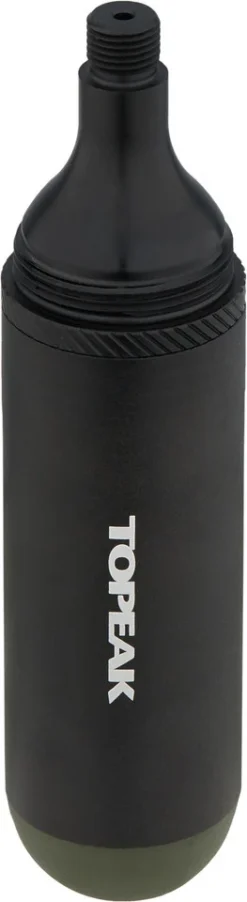 Le kit de réparation TubiCartridge MT25 Tubeless de Topeak se compose d’un tube de rangement en forme de cartouche, d’un outil d’insertion tubeless et de cinq plugs Tubeless pour pneus de VTT. Le point fort de l’outil est un filetage sur lequel une tête de pompe à CO2 peut être directement vissée. Ainsi, tu peux réparer et gonfler ton pneu avec un seul outil.
