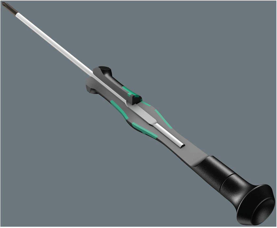 Ser de micro-tournevis de haute qualité de Wera pour le vissage mécanique de précision. En posant la main sur le capuchon rotatif et grâce à la zone de rotation rapide située sous le capuchon rotatif, il est possible de travailler en un clin d’oil car il n’est plus nécessaire de repositionner sa main.